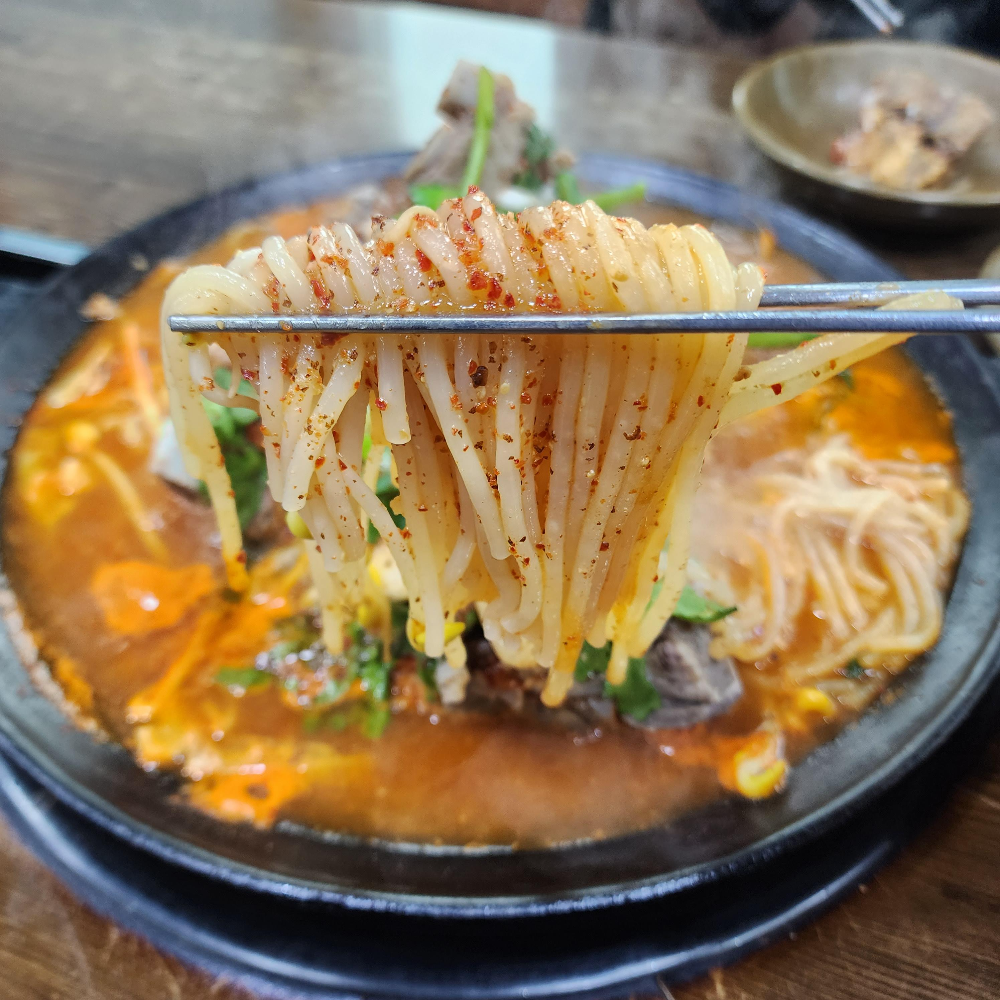 한전옆 감자탕 로컬맛집인 솥뚜껑감자탕은 특이한점이 있는데, 사진에 보시다시피 면이 들어가는데 이 면이 쫄면입니다. 그리고 끓기전 육수부터 간이 잘되어있는데 끓이기전에 한번 맛보신다면 이게 찐이구나라고 알수있을거에요. 육수가 맛있으니 어찌 맛이없을수가 있겠어요 ㅎㅎ 정말 매력적인 국물육수입니다.
