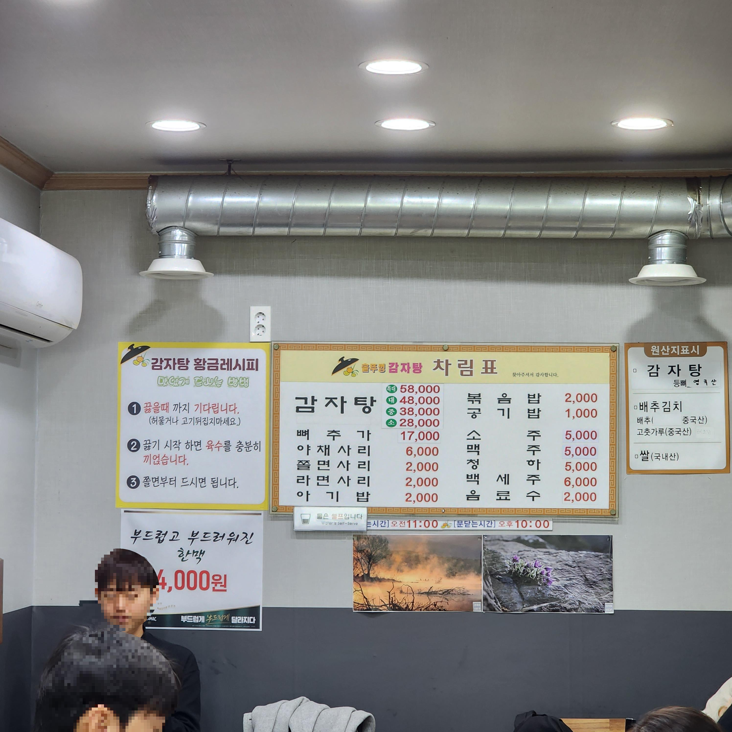 한전옆 감자탕 로컬맛집인 솥뚜껑감자탕의 메뉴판입니다.